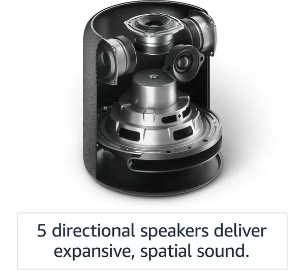 Designed with music in mind, the Amazon Echo Studio brings out the best in every song. 5 speakers generate room-filling sound with powerful bass. Dolby Atmos adds space, clarity, and depth for a virtual surround sound experience.