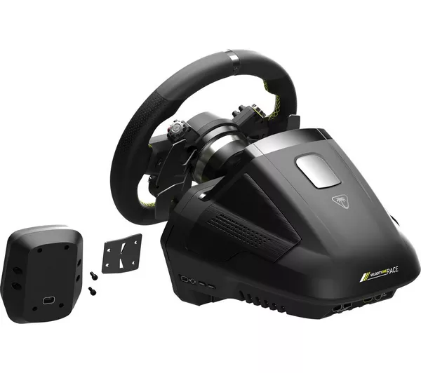Get your wheels turning and engine churning with this Turtle Beach VelocityOne set. Its pedals let you gas up the throttle, hit the breaks and ride the clutch for the ultimate racing experience. Because of load-cell braking, the force you place on the pedals is taken into account, not just the distance you’ve pressed down. Gear changes are nice and smooth with two Magnetic paddle shifters. It’ll feel ultra-realistic too because of the 7.2 Nm K:Drive force feedback. And the VelocityOne control unit is your hub. As well as the steering wheel, it puts your Xbox controls and engine options right at your fingertips. You can even map the buttons, switches and dials.